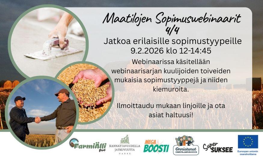 Maatilojen Sopimuswebinaarisarjan viimeinen osa järjestetään 9.2.2026 klo 12-14:45.