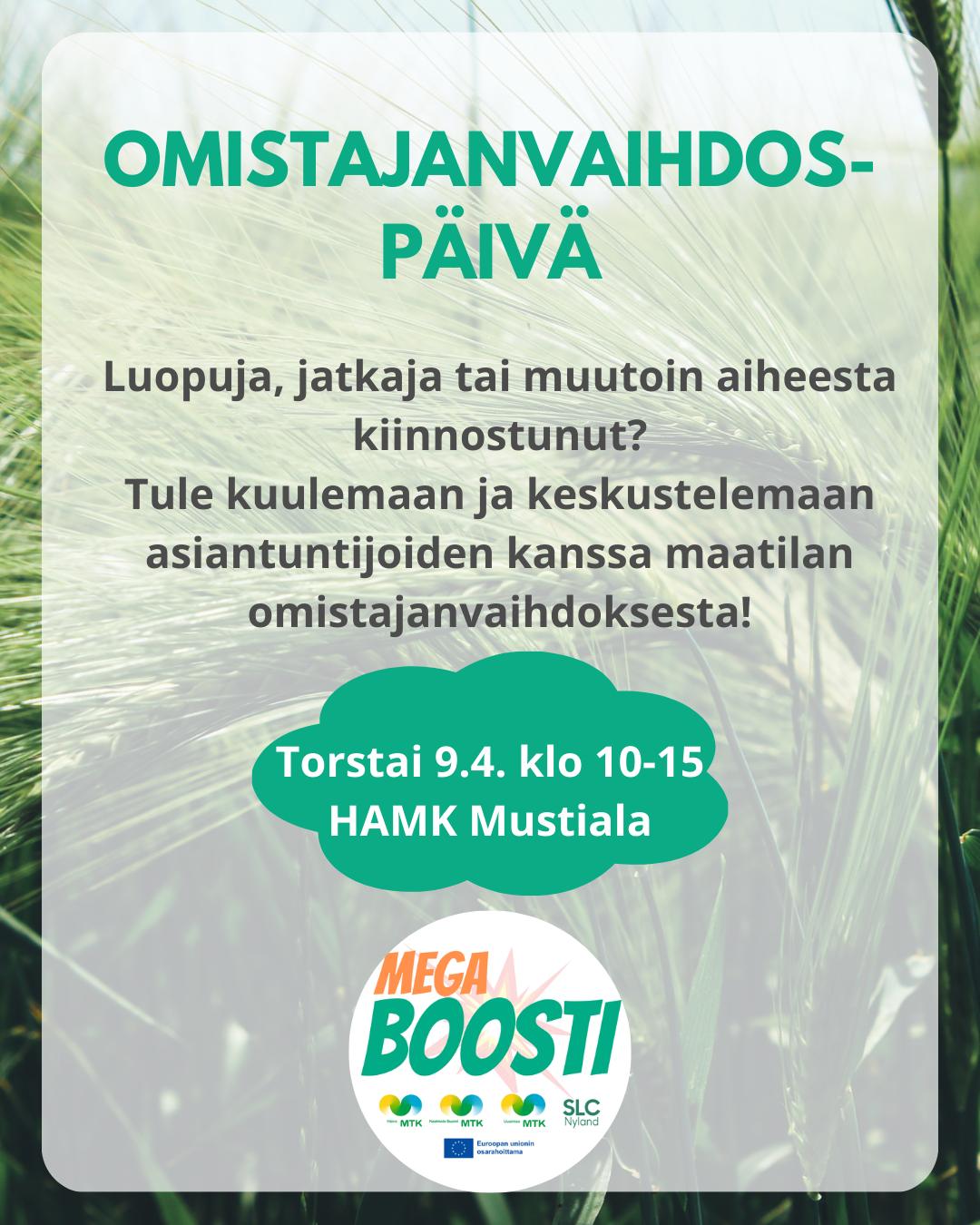 Omistajanvaihdospäivä – tietoa, tukea ja kohtaamisia maatilan omistajanvaihdokseen / MegaBoosti