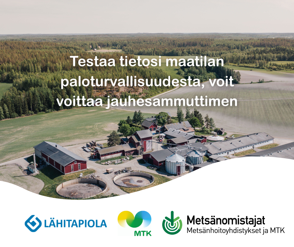 Tutustu MTK-Akatemian ja LähiTapiolan yhdessä tekemään paloturvallisuusaineistoon ja testaa oppimasi! Kirjaudu MTK-Akatemian verkko-opistoon omalla sähköpostiosoitteellasi (sama kuin jäsentiedoissasi), testaa tietosi ja osallistu arvontaan!